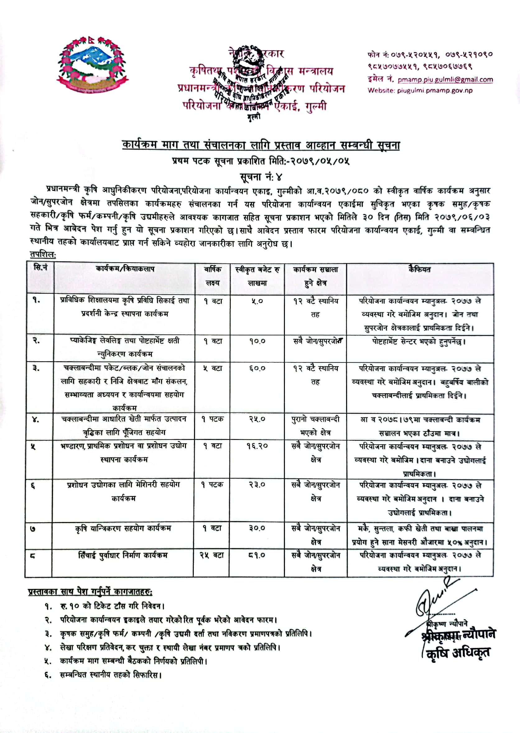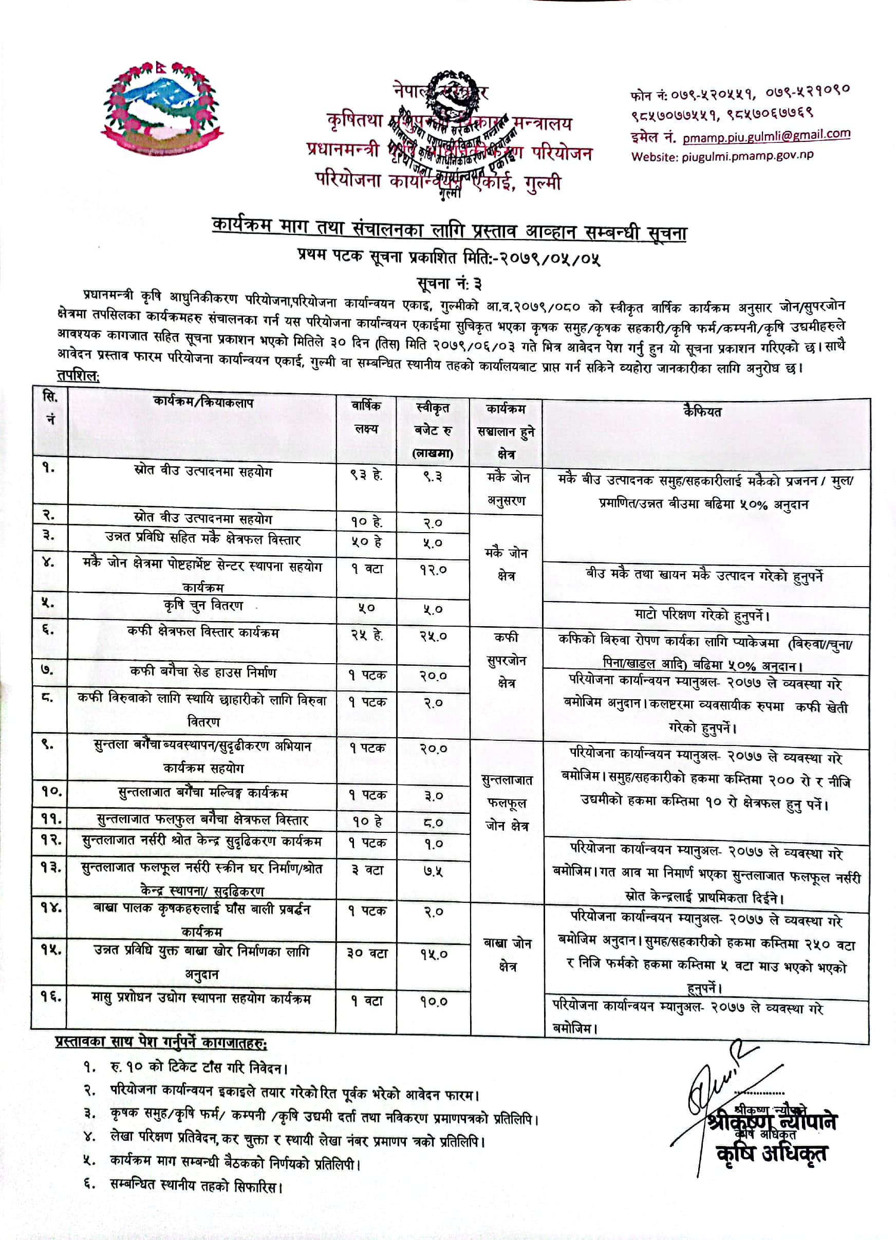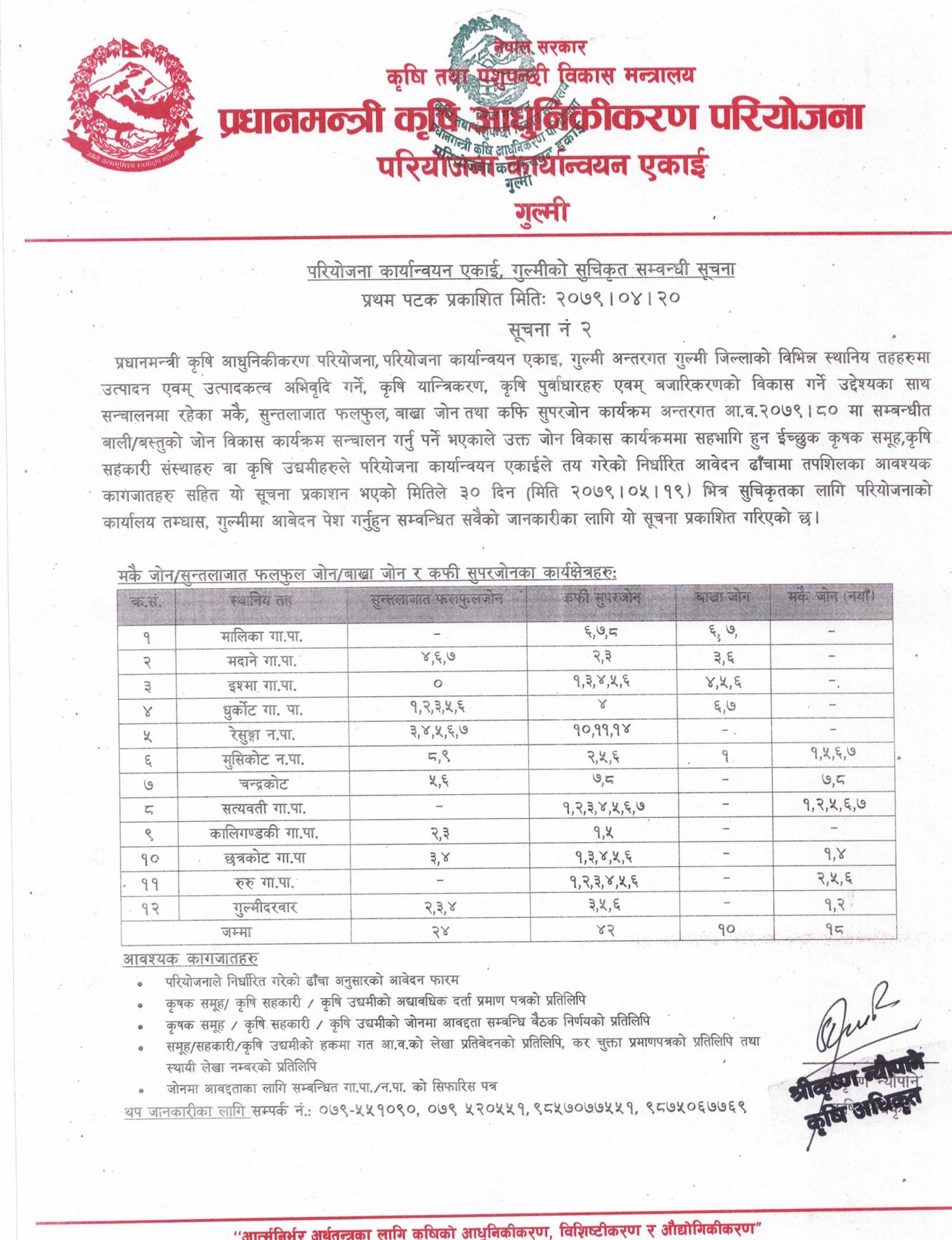 कफी सुपरजोन, सुन्तला जोन, मकै जोन नयाँ, बाख्रा जोन अन्तरगतका कार्यक्रमहरुको प्रस्ताव आह्वान सम्बन्धी सूचना
